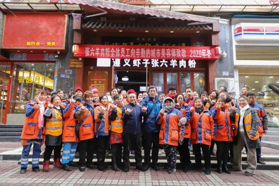 每年寒冬遵義蝦子張六羊肉粉館都會邀請環(huán)衛(wèi)工人們到店免費吃粉,并贈送暖心禮物,今年也不例外。12月18日,遵義蝦子張六羊肉粉館在寒冬中為守護城市環(huán)境、堅守崗位的環(huán)衛(wèi)工人們送上了冬日里的溫暖。