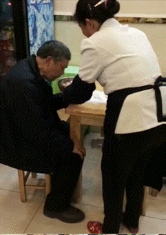 2016年3月6日晚,遵義蝦子張六羊肉粉普陀路店出現(xiàn)了溫馨的一幕:粉店員工張正仙與一位吃粉的老人并不認(rèn)識(shí),當(dāng)時(shí)老人與一名老阿姨一起來(lái)到粉店,進(jìn)來(lái)時(shí)張大姐就注意到老人走路不太方便。粉端上桌后,與老人一起來(lái)的老阿姨就離開(kāi)了,老人用右手顫顫巍巍地夾起粉朝嘴里送,很是費(fèi)勁,張大姐看著有點(diǎn)不忍,就走上前去問(wèn)老人是否需要幫忙。在征得老人同意后,她像照顧自家的老人一樣,站在老人面前,左手端著羊肉粉,耐心地喂老人,擔(dān)心熱湯熱粉燙到老人,張大姐一邊吹冷一邊喂,慢慢的將粉喂完后,才繼續(xù)忙自己的工作。