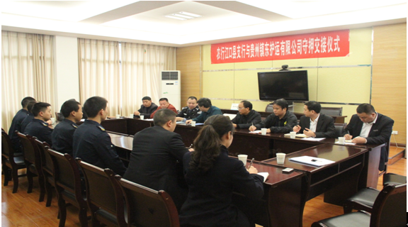 經(jīng)過半年的業(yè)務(wù)對接和洽談,銅仁本部于11月16日至20日正式接手德江、石阡、印江、江口、松桃五縣農(nóng)業(yè)銀行守押業(yè)務(wù)。銅仁市公安局保安大隊大隊長王世軍、銅仁市農(nóng)行副行長任達輝、銅仁市農(nóng)行保衛(wèi)部經(jīng)理楊猛、銅仁本部總經(jīng)理陳葉、副總經(jīng)理劉興華、劉樹等出席了五縣守押業(yè)務(wù)交接儀式。