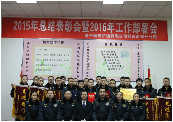 2016年1月15日,貴州鎮(zhèn)東護(hù)運(yùn)有限公司2015年工作總結(jié)及2016年工作部署會(huì)議在東山大酒店六樓會(huì)議室召開,參會(huì)人員有:貴州鎮(zhèn)東護(hù)運(yùn)有限公司董事長王訓(xùn)江、副董事長冉光齊、監(jiān)事會(huì)主席徐登嘉及各分公司負(fù)責(zé)人。