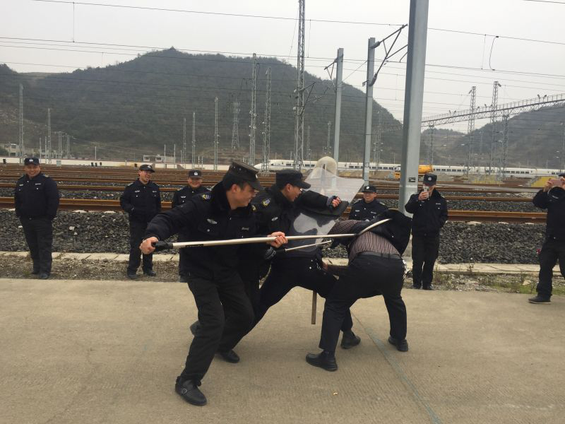 三、按照客戶單位《反恐怖主義法》宣傳教育活動(dòng)周安排,于2016年12月21日14:00-16:00,由駐車輛段動(dòng)車所保安隊(duì)開(kāi)展反恐處突實(shí)作演練,共計(jì)26名駐車輛段動(dòng)車所保安隊(duì)隊(duì)員參加演練,于2016年12月22日9:00-10:00,由駐車輛段、客運(yùn)段保安隊(duì)開(kāi)展反恐處突實(shí)作演練,共計(jì)12名駐車輛段、客運(yùn)段保安隊(duì)隊(duì)員參加演練。本次演練以反恐怖主義法教育、反恐器材使用、反恐團(tuán)隊(duì)配合和應(yīng)對(duì)刀斧砍殺實(shí)作演練為主,有效提高了職工反恐應(yīng)急處置能力。