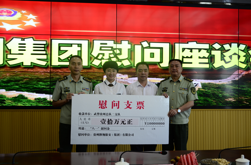 為表達(dá)對人民子弟兵的慰問之情,繼承和發(fā)揚(yáng)部隊的優(yōu)良傳統(tǒng),學(xué)習(xí)部隊優(yōu)良作風(fēng),2016年7月22日,集團(tuán)公司董事長王訓(xùn)江同志帶領(lǐng)公司管理人員共20人來到武警貴州省總隊二支隊進(jìn)行一年一度的“八一”節(jié)日慰問。