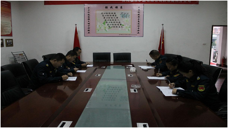11月底,六盤水市分公司召開了月安全形勢分析會,對當(dāng)月每位員工思想動態(tài)問卷調(diào)查的工作進行小結(jié),并對12月份的工作進行安排部署。目前,押運隊伍比較穩(wěn)定,隊員思想素質(zhì)相對較好,沒有波動,各項工作順利進行。
