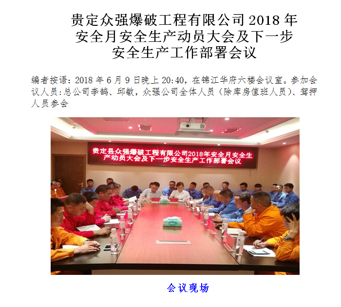 貴定眾強爆破工程有限公司2018年 安全月安全生產(chǎn)動員大會及下一步 安全生產(chǎn)工作部署會議