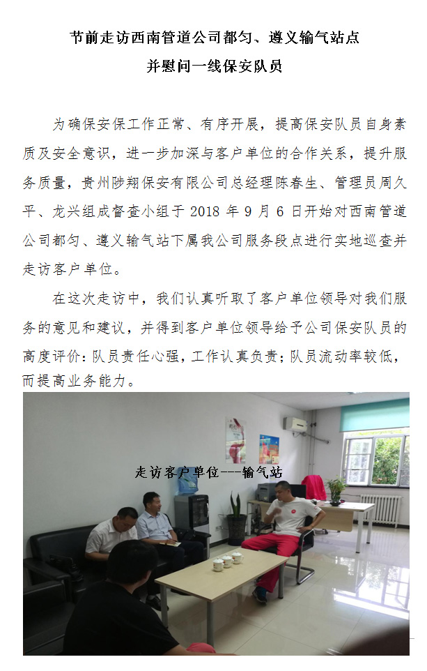 前走訪西南管道公司都勻、遵義輸氣站點(diǎn) 并慰問(wèn)一線保安隊(duì)員